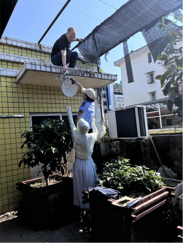 同时,还检查居民小区3个,现场拆除“非卫”设施1套,发放“小锅盖大危害”宣传资料40余份,扩大了宣传面,提升了民众“拒非”意识。