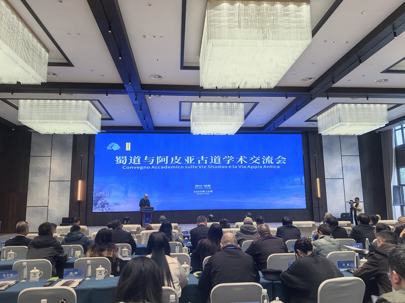 为借鉴意大利阿皮亚古道成功申遗与管理的先进经验,推动蜀道文化遗产的保护、研究与活化利用,2025年10月29日,由四川省文物局指导,四川省文物考古研究院、广元市委宣传部、蜀道研究院联合主办的“蜀道与阿皮亚古道学术交流会”在广元市剑阁县成功召开。意大利驻重庆总领事施启帆(Fabio Schina)、四川省文物局局长唐飞、广元市委常委袁敏出席会议并致辞。