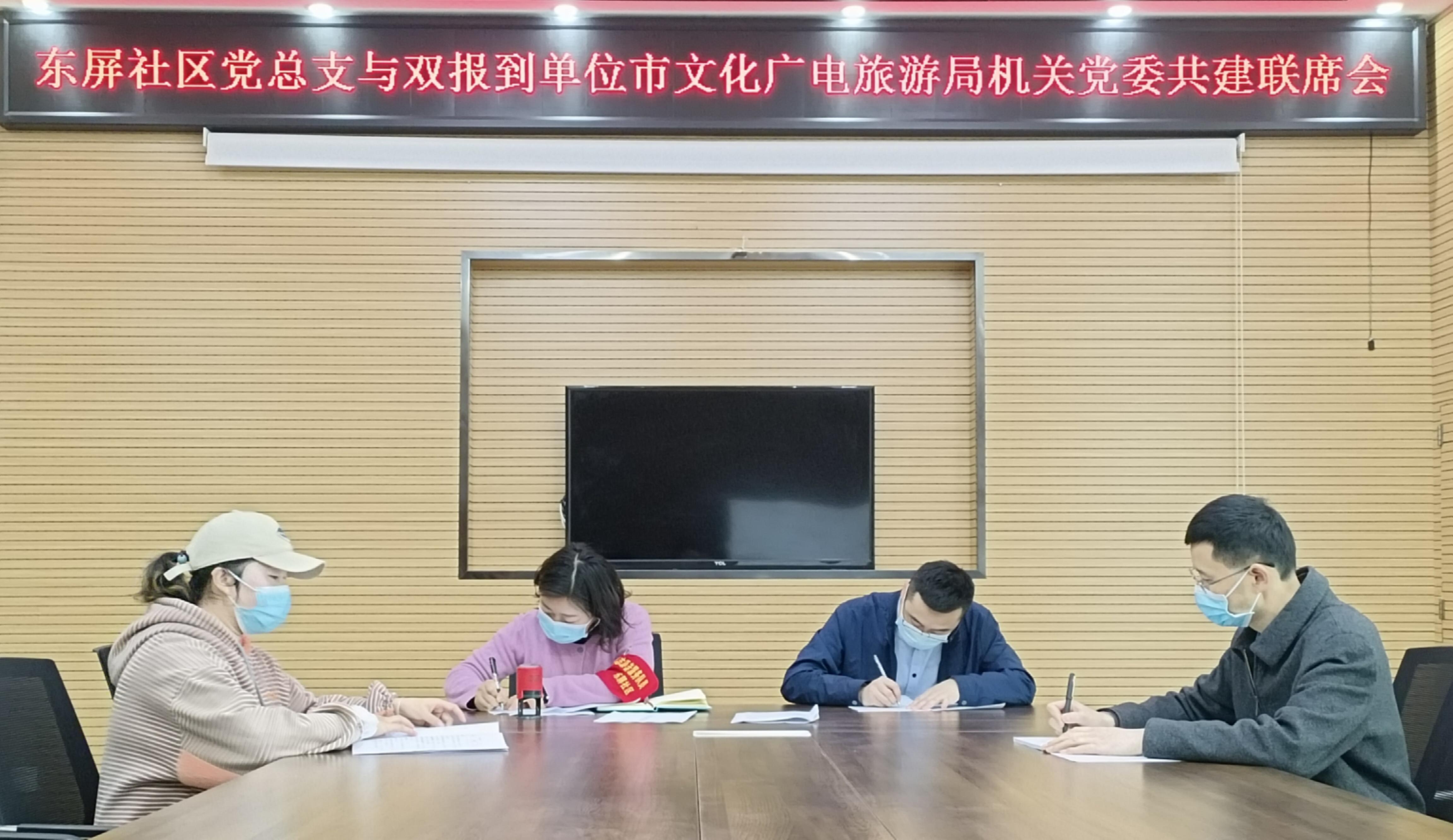 4月16日,东屏社区党总支与市文化广电旅游局机关党委召开结对共建联席会议,深入推动报到地党组织与“双报到”党组织工作全面进步、全面过硬,形成优势互补、共同提高的基层党建工作格局。