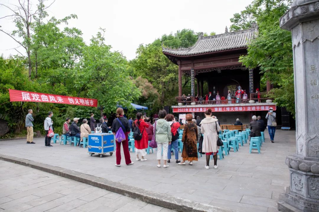 当天,久违的锣鼓声、悠扬的唱腔逐渐吸引了来往游客的驻足,经典川剧折子戏与红色题材豫剧《烽火情缘》为广大游客奉上了一道丰盛的戏曲盛宴,掌声与喝彩不绝于耳,在大家的意犹未尽中,首日演出圆满落下帷幕。