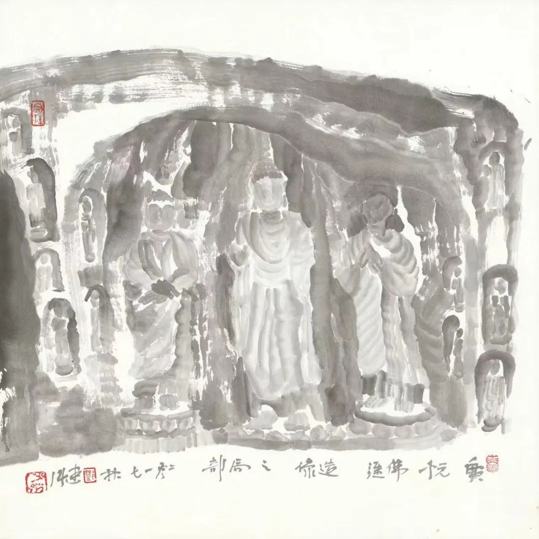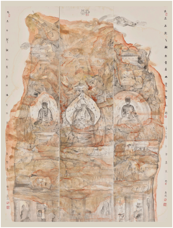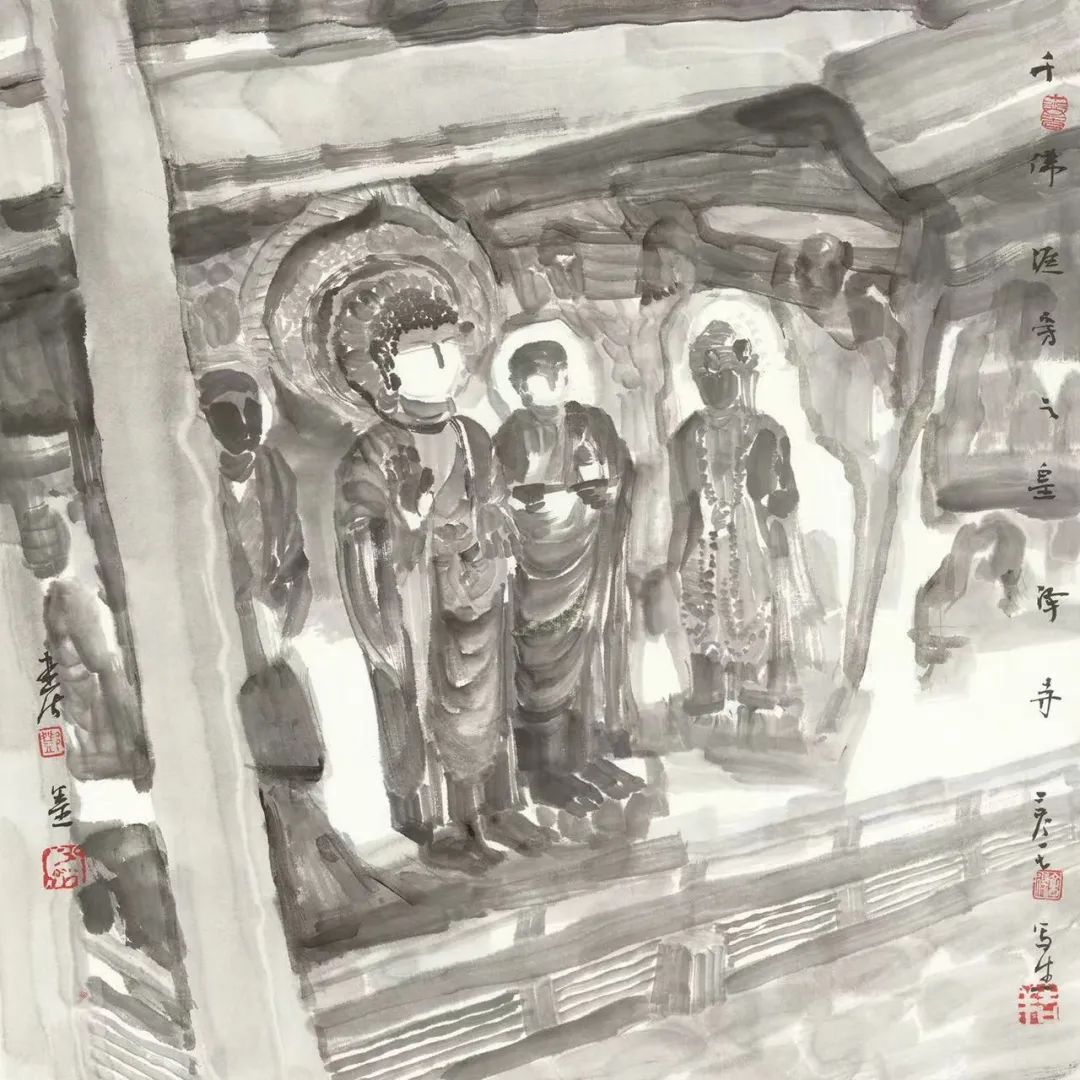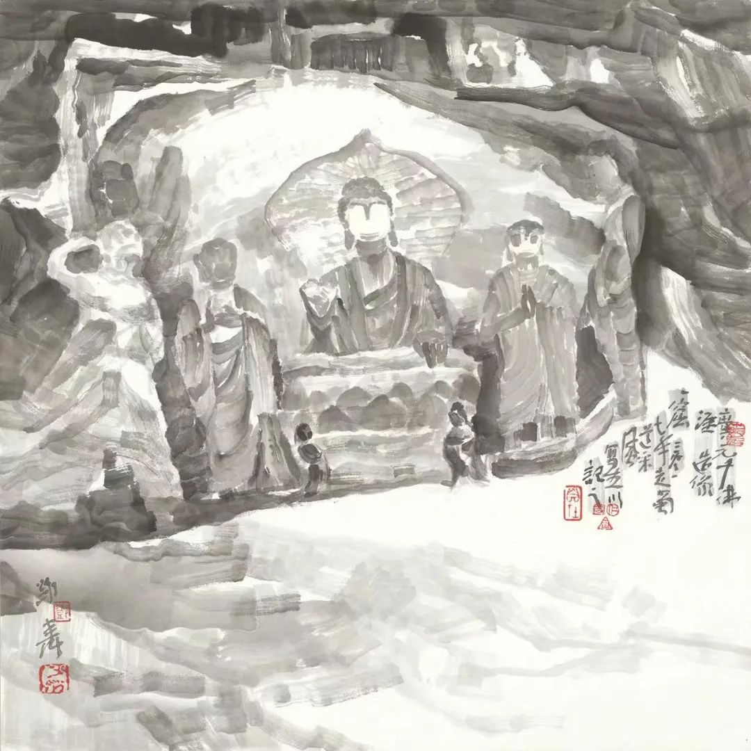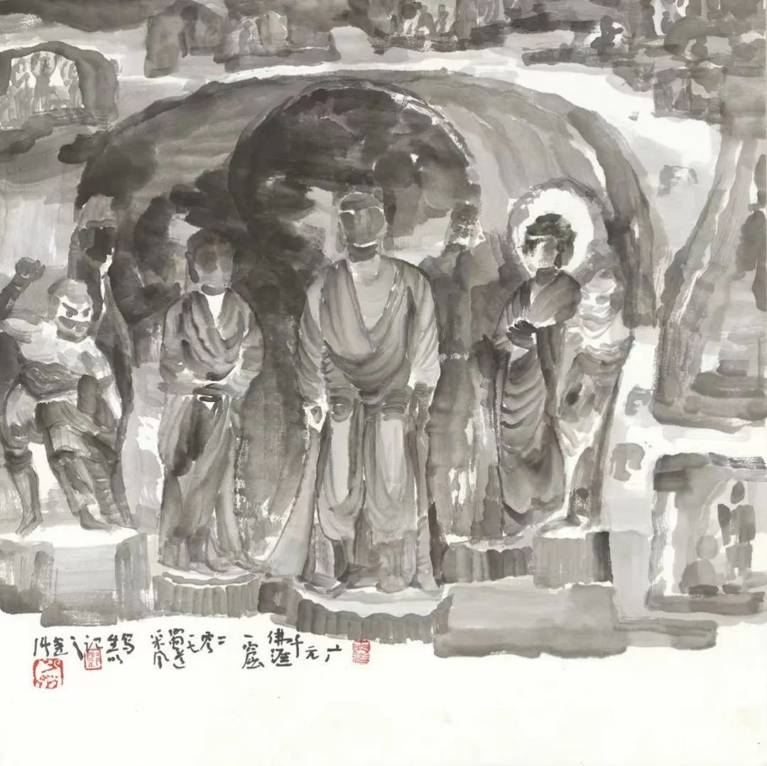 展览以“圣迹刻墨”为主题,展出了邓建强先生近年来以川渝地区尤其是大足石刻为主创作的佛教题材水墨作品70余幅。他以视觉的多元性表现佛教题材,既从大视角呈现出摩崖石刻的壮美,也从细微处展现了中国传统石刻艺术的秀美,饱含了对巴山蜀水的热爱,表现出当代人追求桃花源般的理想境界。此次巡展特别展出了邓建强先生以皇泽寺、千佛崖摩崖造像石刻艺术为题材创作的作品近10幅。