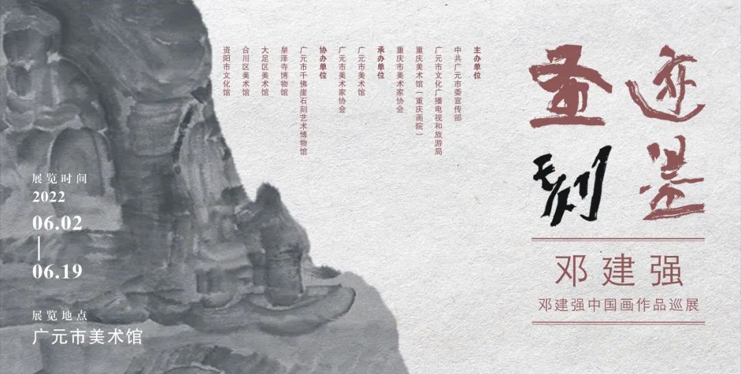 6月2日,由中共广元市委宣传部、广元市文化广播电视和旅游局、重庆美术馆(重庆画院)、重庆市美术家协会主办,广元市美术馆、广元市美术家协会承办,广元市千佛崖石刻艺术博物馆、皇泽寺博物馆、大足区美术馆、合川区美术馆、资阳市文化馆协办的圣迹刻墨·邓建强中国画作品巡展在广元市美术馆隆重开展。