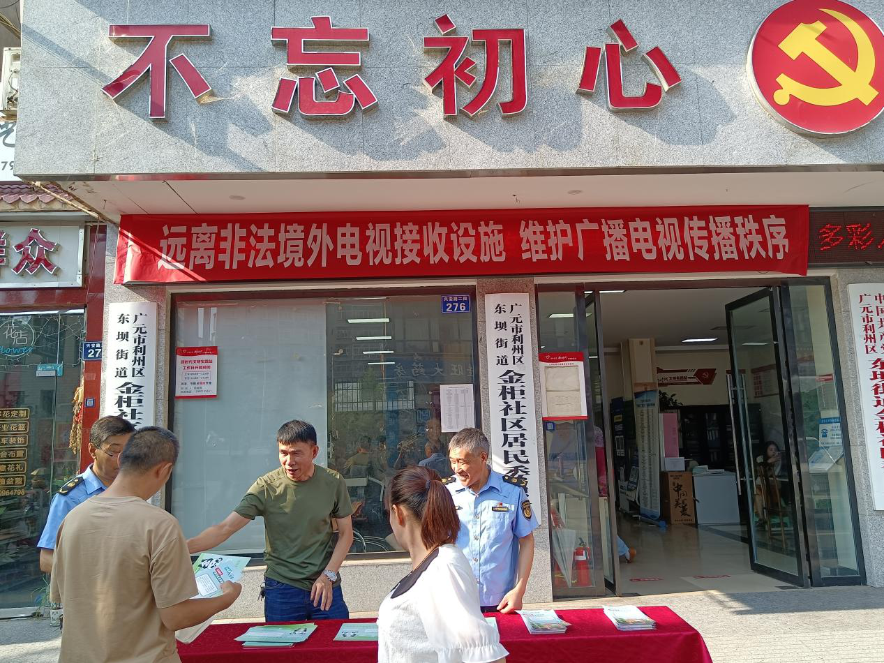 为深化境外电视传播秩序专项整治,营造人民群众支持参与的良好氛围,8月14日,市文化广电旅游局在利州区东坝街道组织开展了以“远离非法境外电视接收设施 维护广播电视传播秩序”为主题的宣传活动。通过多举措、多渠道与群众、商家面对面交流,增强了商家守法经营意识和群众自觉抵制非法接收境外电视节目的意识。市文化广电旅游局调研员许清,局机关相关科室、市文化市场综合行政执法支队、利州区文化广播电视体育和旅游局相关同志参加宣传。