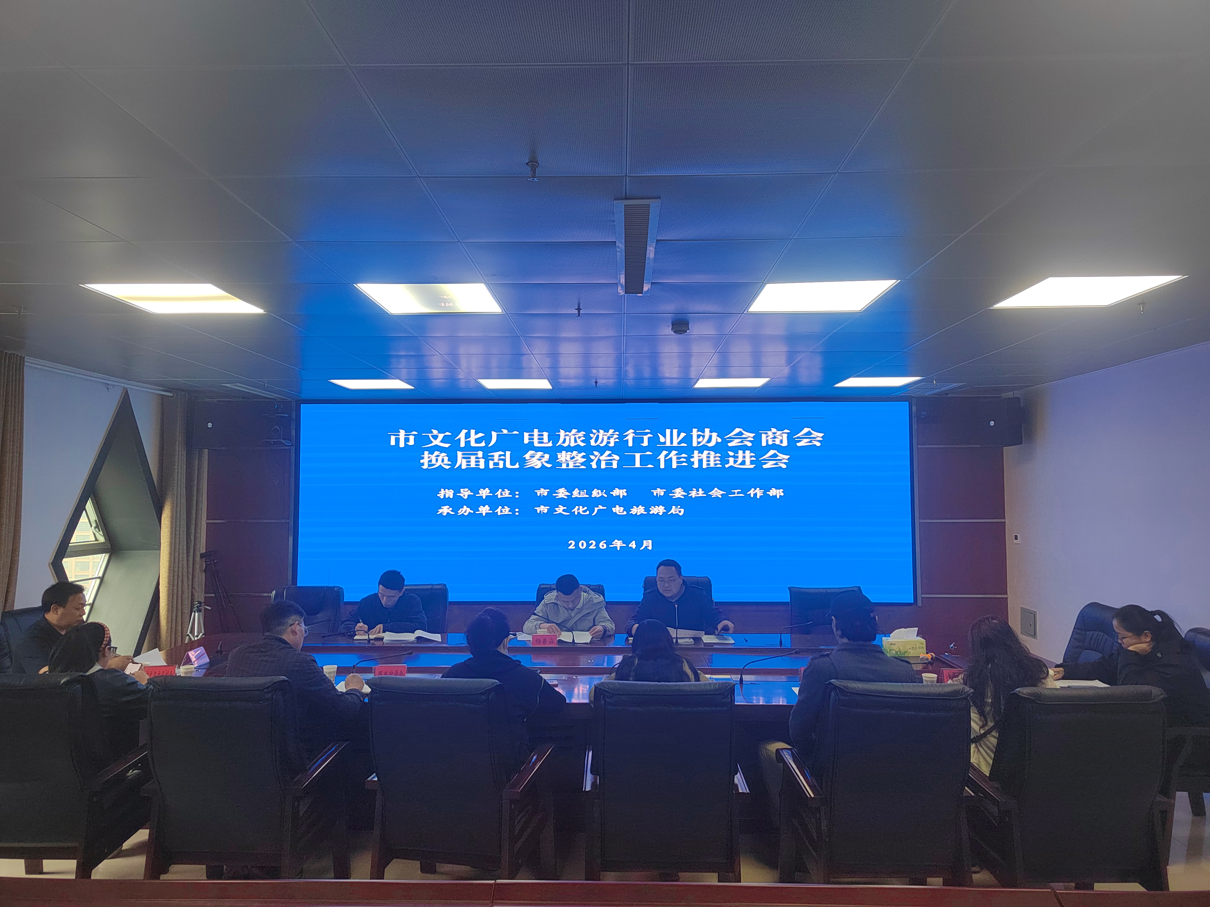 为进一步规范全市文化广电旅游行业协会商会管理,净化行业生态,强化党建引领,4月15日,市文化广电旅游行业党委组织召开市文化广电旅游行业协会商会换届乱象整治工作推进会。市委组织部、市委社会工作部有关负责同志到会指导,市汉文化协会、广元文化遗产协会、市图书馆学会等行业协会商会有关负责人参加会议。