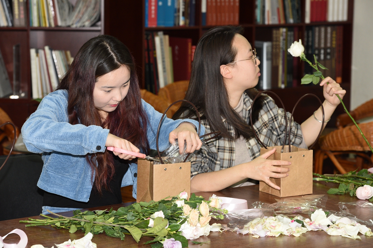 市美术馆公共教育部主任杨柠端介绍举办这次“花艺与画艺”主题艺术沙龙活动基本情况。市美术馆展览策划部主任黄根就花艺与画艺的艺术概念、艺术区别、艺术鉴赏以及日常生活中如何利用花艺与画艺丰富文化生活等理论讲解。花艺师卢佩佩老师介绍了各种鲜花的特点与插花艺术的一般常识和如何策划制作一束既有观赏性、又有艺术性的插花。卢佩佩老师带领20多位同学,每人亲手制作了一束漂亮的插花,卢老师还对大家制作的插花进行现场点评,评出三位优秀学员。