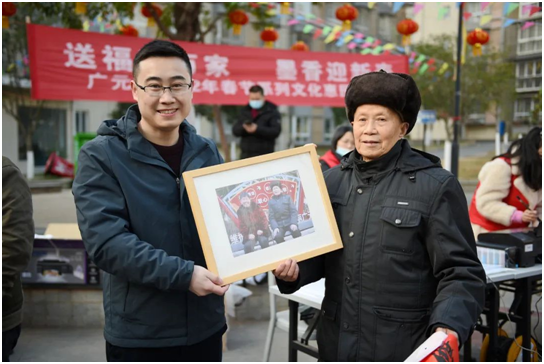 “老师,帮我写下这幅对联!”“我要一个胖胖的福字!”“老师,帮我们老两口拍个照片!”活动现场,不时有群众提出要求,志愿者们都一一满足他们的愿望。不大的广场上围满了参加活动的群众,有的拈着墨迹未干的春联福字小心欣赏,有的捧着拍摄打印并装裱好的相框仔细端详,有的拿着自己的素描肖像喜笑颜开。现场的欢声笑语驱散了寒冷,让人感受到了浓浓的春意。本次活动共送出春联福字200余份,拍摄打印照片50余张,速写肖像近5幅。