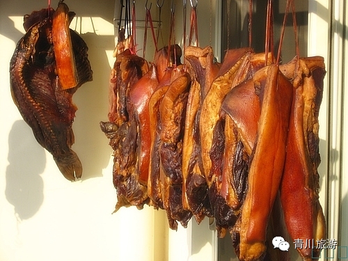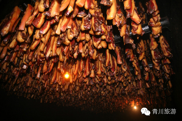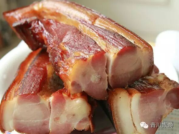 腊肉煮熟切成片,透明发亮,黄里透红,味道醇香,肥不腻口,瘦不塞牙,有开胃、去寒、消食等功效。热情好客的青川人常用腊肉来招待客人或庆祝节日,且“一家煮腊肉百家香” 哦。