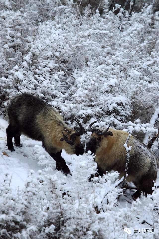 扭角羚来到公路旁尽情舞蹈……