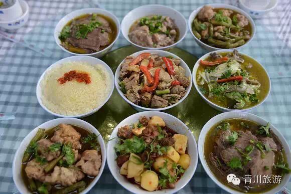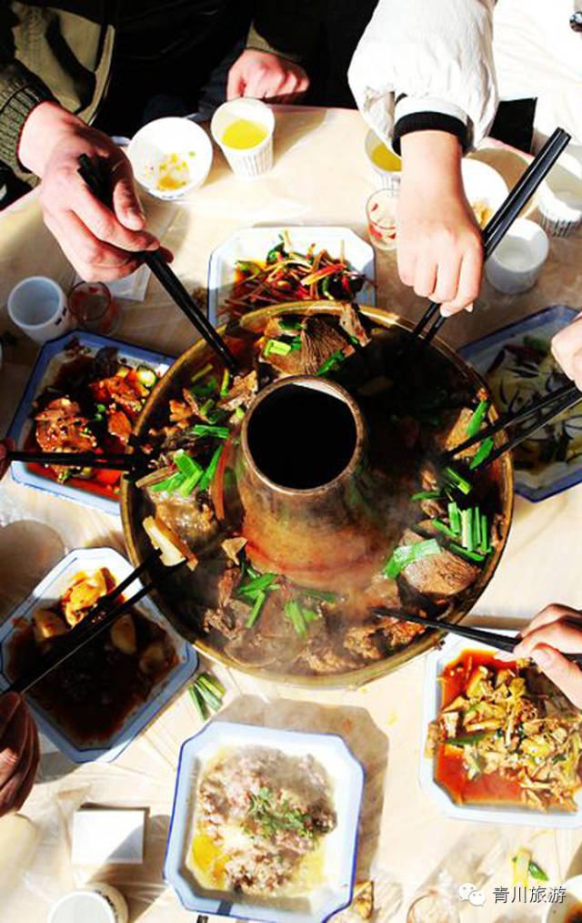 回族九大碗、碳烧铜火锅 回族人大宴宾朋,香喷喷的清真九大碗和热腾腾的炭烧铜火锅是定要拿来撑场面的。牛肉酥烂,细嫩爽滑,滋味绵长;羊肉肥瘦相间,不油不腻,不膻不腥。面食香脆可口、颜色金黄;想吃回族美食,那青川绝对是吃货们的天堂。