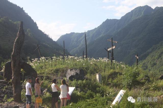 东河口百合花盛开 每年六月,东河口地震遗址公园内野生百合花竞相绽放。漫山遍野的花朵暗香阵阵,给人平添一份感动、坚强。大爱崛起碑下,昔日的废墟如今已是绿草茵茵。远处,炊烟袅袅,农家小院掩映在绿树红花中。新的生命是最蓬勃的希望,孩子们的笑脸是最美的景。