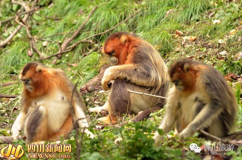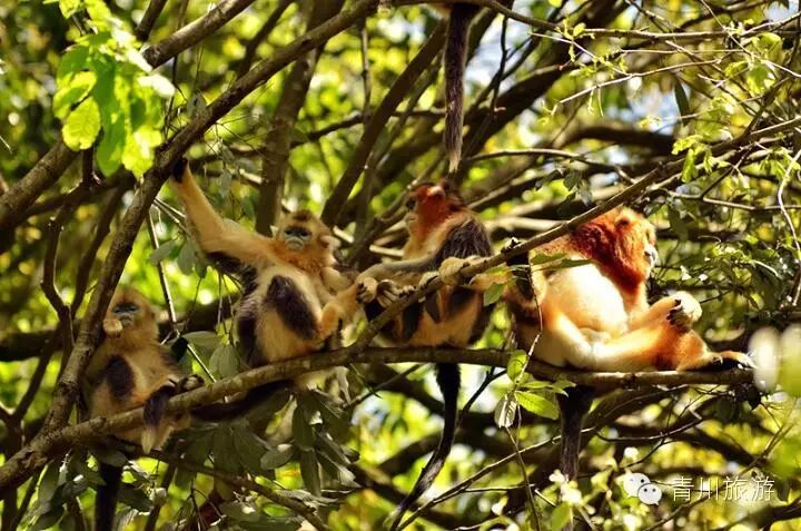 当它们穿越在林间,闪耀起一片金光时,仿佛是这大森林里的一群精灵;当它们吃饱玩够,闲坐在那儿时,那庄严的模样却又自带了一分王者的气派,难怪它的尊容会被印上邮票,传遍全世界呢。在唐家河,一年四季都能观赏到他们骄健的身姿。