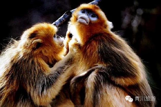 唐家河川金丝猴面孔呈蓝色,鼻孔上仰,所以也叫“蓝面猴”、“仰鼻猴”。毛色金黄柔软,最长可达10厘米,耀眼夺目,使它们多了几分华丽与高贵。